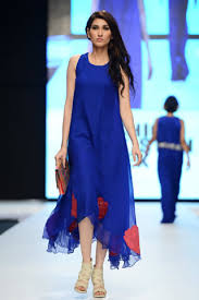 Hina butt took inspiration from Sufi mystic to design this collection. Distinct blue, white pottery, eye catchy color palette, embroided patterns, embellishment techniques, patchwork, intricate cutwork, digital prints further enhanced by hand painted pottery of the region. Teena By Hina Butt PFDC collection channeled a modern look in a variety of fabrics such as grip, chiffon, raw silk and organza coupled with silhouettes that vary from voluminous gowns to straighter cuts with a focus on shorter lengths to tapered pants for a sleeker look.